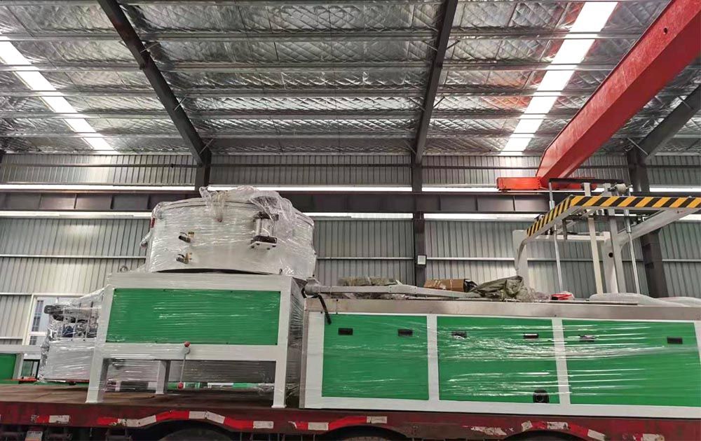 PVC格栅板生产线设备主要组成部分: 锥形双螺杆挤出机,模具,定型台,牵引机,切割机,堆料架。配套辅机:混料机,覆膜机。