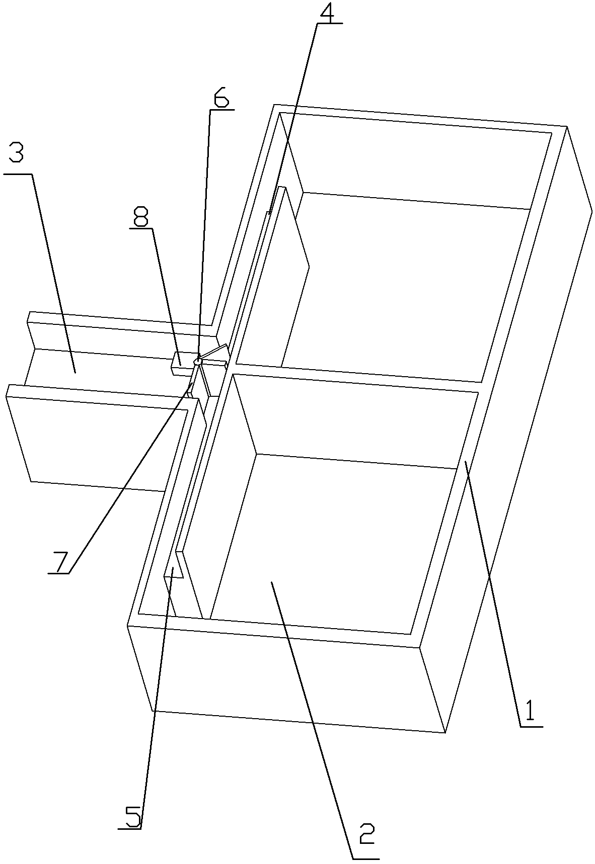 本实用新型的工作原理及有益效果如下:污水通过流入通道进入到沉降池中进行沉降。在沉降池中又分为多个沉降分池,流入口又与每个沉降分池连通。在流入口处设有控制结构。当通道中的污水流量较小时,控制结构控制污水直接流入其中的一个沉降分池中进行沉降。而当通道内的污水流量较大时,则可以通过控制结构,使污水控制流入口的的流量进而使污水进行分流,分别进入不同的沉降分池中进行沉降。这样无论污水的流量大或小,都可以确保污水在沉降池内进行沉降,不会影响沉降效果。