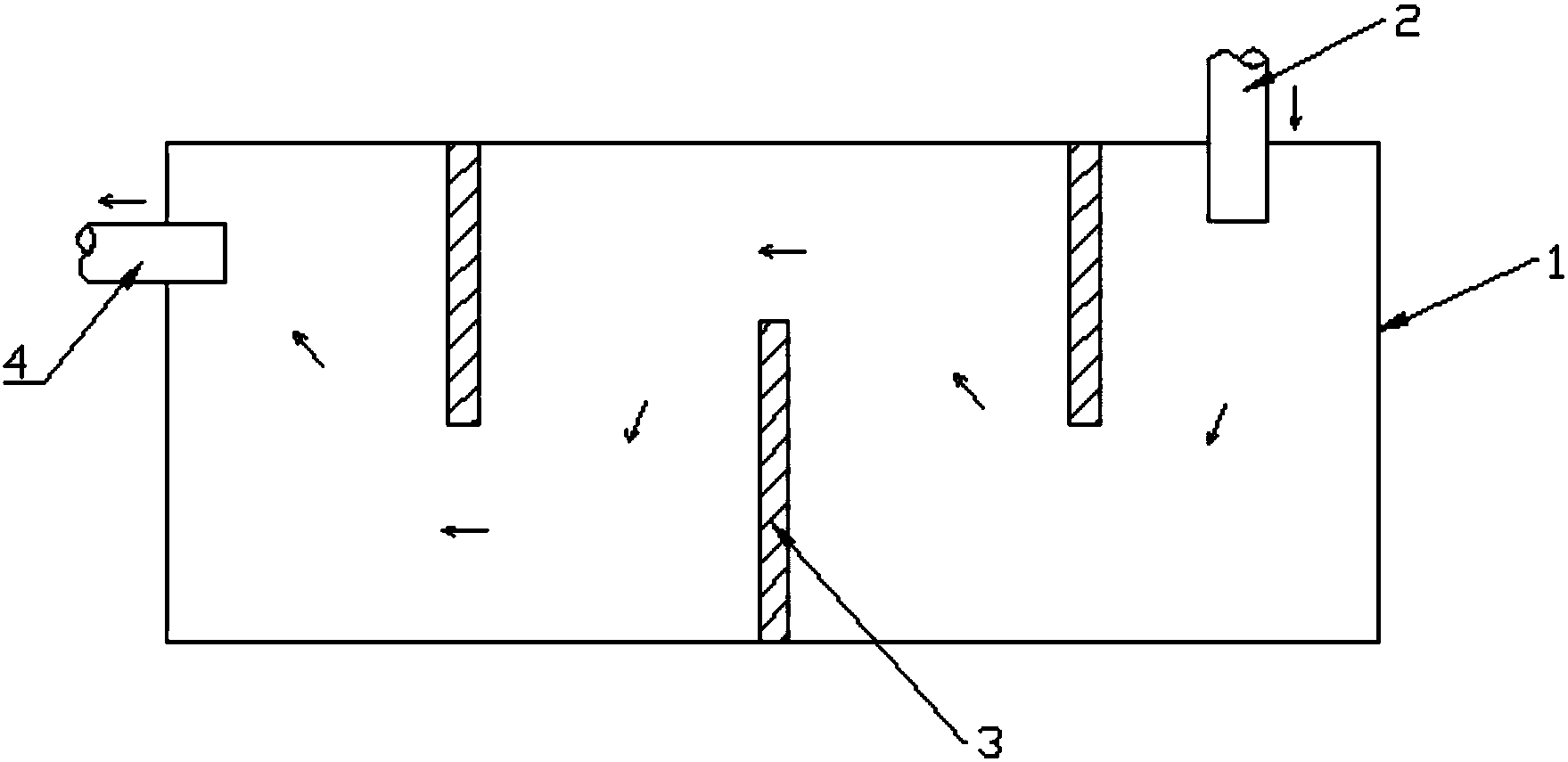 为了达到上述目的,本实用新型采用以下技术方案:一种工业污泥制备陶粒用的余热回收装置,包括装置主体、烟气入口管道、导流墙和烟气出口管道,所述烟气入口管道和烟气出口管道分别设于装置主体的两端;所述导流墙设于装置主体内部,且采用迷宫式设置。将导流墙采用迷宫式设置,可以增加烟气在装置主体内停留的时间,提高能源利用率。