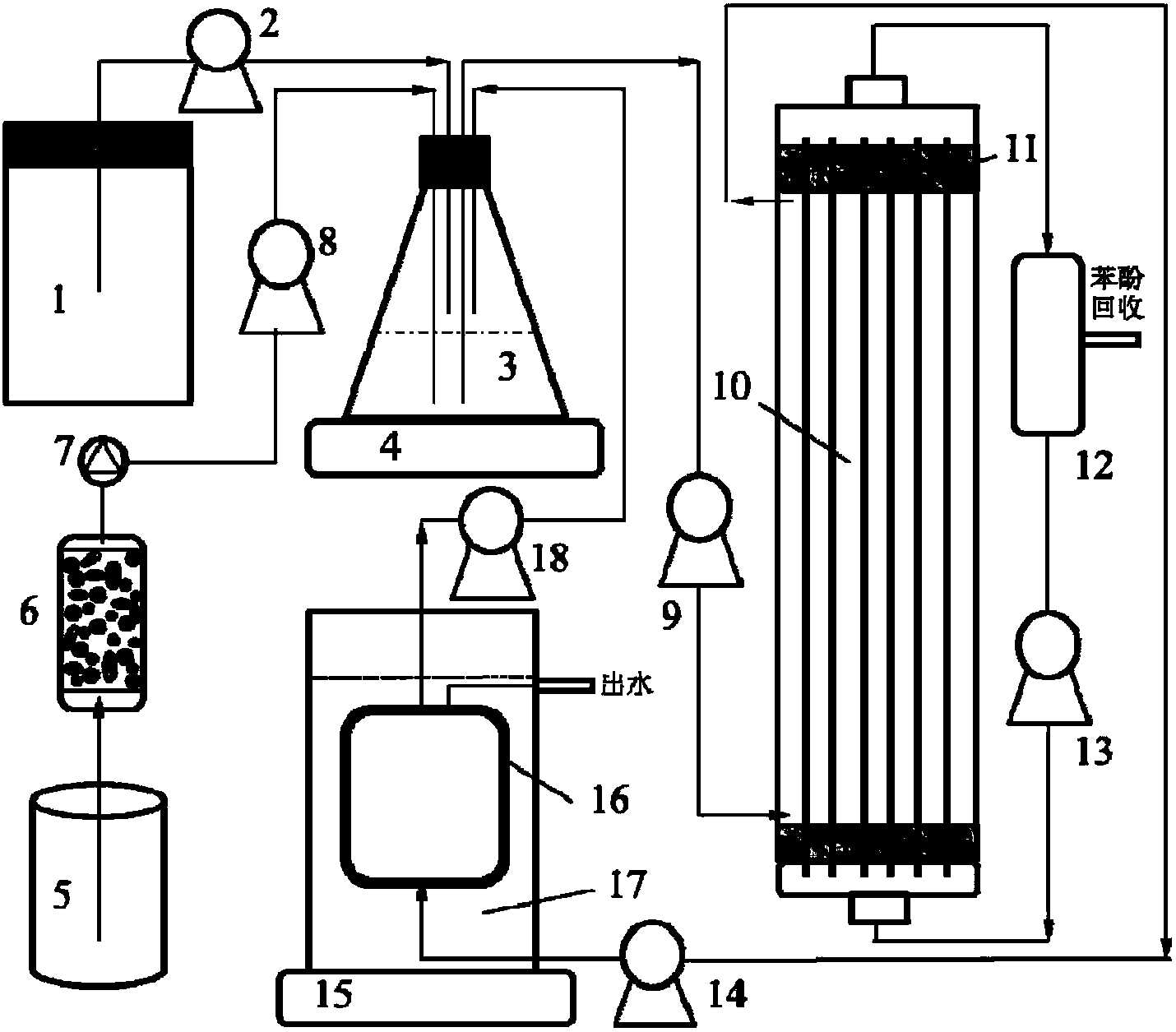 为解决现有技术的不足,本发明的目的在于提供一种可持续高效地去除工业废水中难降解苯酚的生物处理装置,有效提高水质,同时回收利用苯酚和萃取剂,达到环保降低成本的作用。