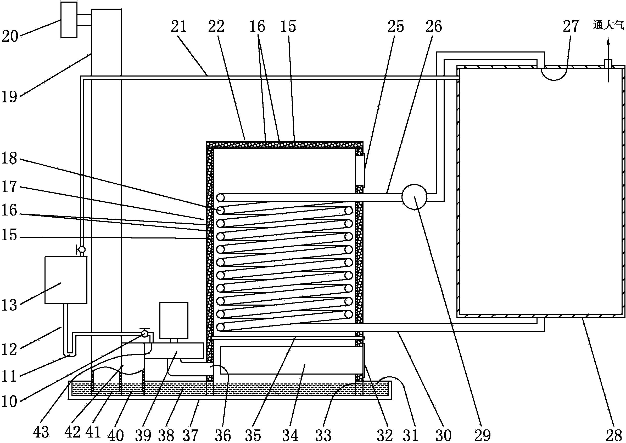 2、本实用新型的盘管的出液口属于开放式的结构,因此盘管内的液体压力 保持常压状态,安全性高。