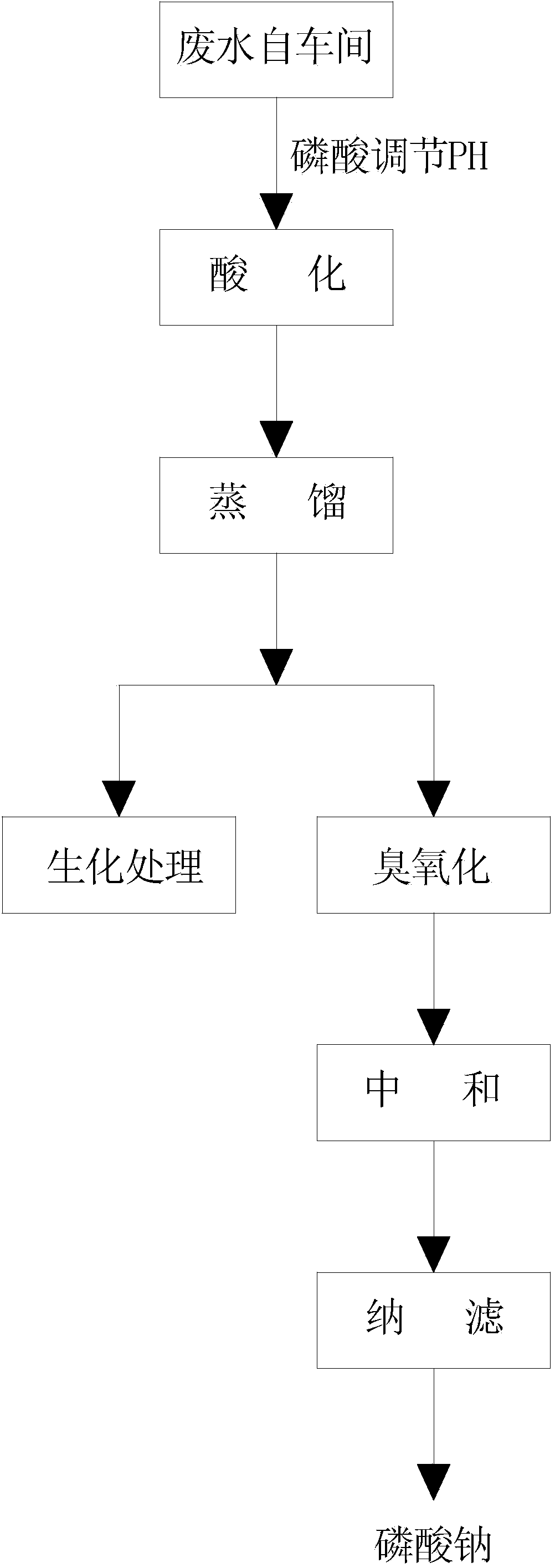 (1)采用磷酸对废水进行酸化,使得废水中不含其它不易生化处理的阴离子;