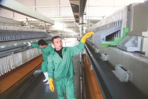 ▲ 工人们正在检查泡菜废水回收处理设备设备。