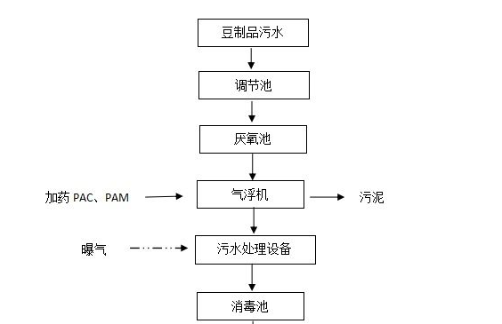 豆制品污水主要来源于泡豆水、蒸煮豆浆水、清洗水等,另外,豆制品生产过程属于间歇生产方式,排水时间较集中,水量水质不均匀;厌氧条件下易在污水表面产生浮渣层;豆制品污水污染物主要是颜色、多糖、蛋白质和维生素物等物质所组成总体上可生化性较好,易于生化降解。污水中含有各种微生物,包括致病微生物,污水易腐败发臭;而且此类污水中还含有大量对人类健康有害的微生物。如不经处理直接排放,会对水环境造成严重污染,对人畜健康造成危害。