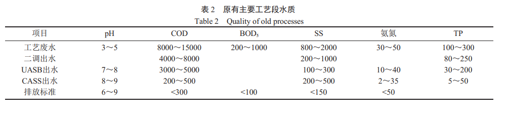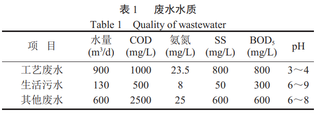 目前污水处理系统处理水量为 1730m3/d,废水根据其产生情况分为工艺废水、生活污水和其他生产废水。各项具体水质见表 1。