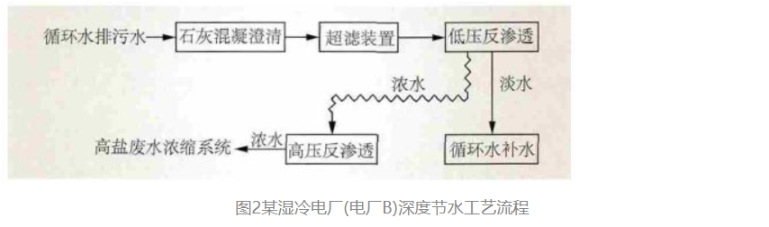 图2某湿冷电厂(电厂B)深度节水工艺流程