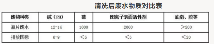 由于废旧饮料瓶中含有大量的污渍,仅靠水是难以去除的,因此在加工过程中通常加入清洗粉(清洗剂)、片碱(烧碱)等,两者与水的比例为1:1:100。由于清洗材料的使用,使得瓶片清洗废水成弱碱性,并且含有磷酸三钠、片碱、阳离子表面活性剂等化学物质,以及油脂、胶等废瓶清洗残留物。根据国家2002年出台的城镇在线亚洲精品自拍,精品乱码一区二区三四区视频排放标准,瓶片清洗废水中含有大量超标的碱、磷等化工物质,如果不经处理直接排放,将会对社会造成较大的危害。