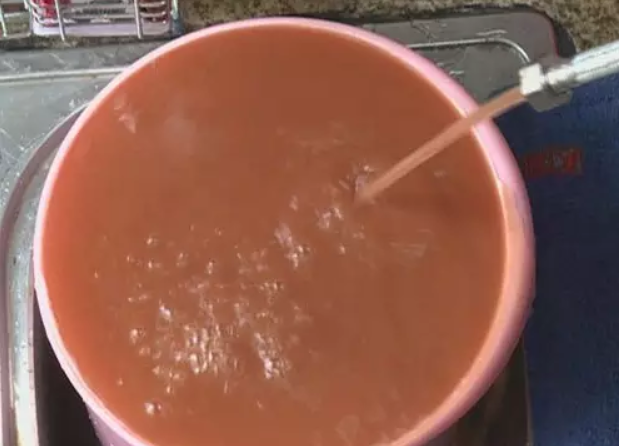 这砖红色的脏水足足装满了一个水桶,闻起来有点像蔬菜腐烂的味道!楼主实在不敢想象原来我每天洗澡的水竟然是如此脏!原来每天都是在用泥土一样脏的水洗澡啊!