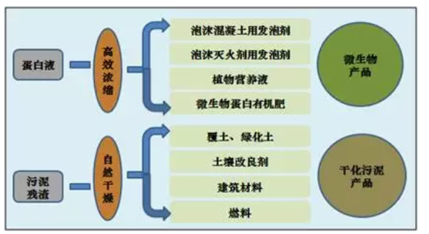 污泥经水解处理后,其含蛋白液体经浓缩后可作为蛋白发泡剂和有机肥等利用,污泥残渣可用做覆土、绿化土、土壤改良剂和建筑材料等。