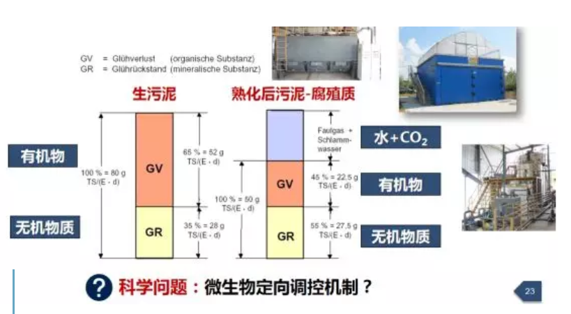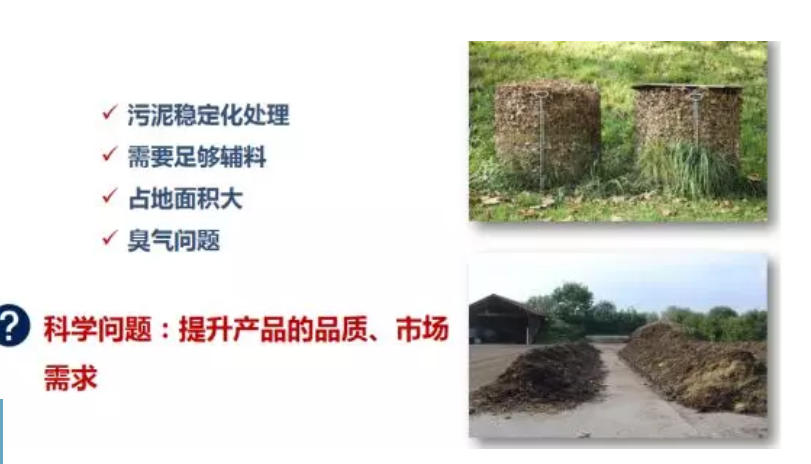 与城市相比我们认为农村的污泥最重要的是要实现稳定化的处理。农村的污泥为什么要进行稳定化的处理呢,就比如过去我们农村家里为什么要去沤肥,要把它进行易降解的有机物进行分解,因为如果没有沤肥的话会有病毒传播。对未经稳定化处理的污泥进行污泥处置时,在运输、转运的过程中可能会有有机物的腐败、嗅味等二次污染的风险;如果回到水体、原水40%-50%的COD也会污染水体,那么减排目标就会大打折扣。生物稳定化处理可以去除约30%的易腐有机物,促进腐质化作用,有利于N、P、K的保留以及致病菌的控制,从而解决卫生问题,提高土壤品质和养分,降低病原微生物。
