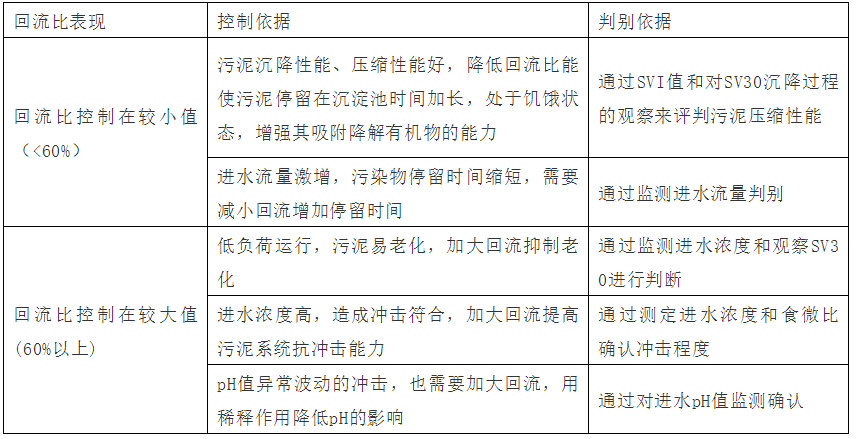 回流比在正常情况下的调整操作,正面作用并不明显,但是在污泥系统故障时的应急调控中具有重要作用。