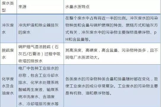 电厂废水来源及水质特点总结于下表。