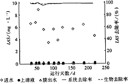 以上结果说明LAS的去除主要靠生物反应池中微生物的分解作用,膜对LAS的截留作用很小。