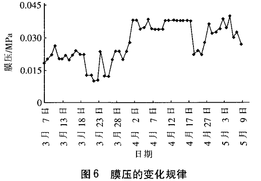 MB R运行期问的膜压变化如图 6所示 。
