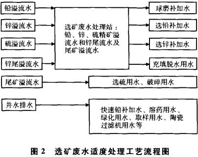 专业人士经过大量的水处理试验和选矿对比试验综合研究,总结出一条解决矿山选矿废水的较好方案。以铅锌矿为例,其工艺流程如图2所示。