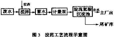 为充分利用选矿厂原处理设备,我们提出将直径18m的浓缩机改成旋流絮凝沉淀池。经小试得知,如果把出水浓度控制在300mg/L以下时,其处理负荷最高只有0.3m3/m2•h,但在改造的旋流絮凝沉淀池内投加阴离子型聚丙烯酰胺后,处理负荷量可以达到2m3/m2•h,即旋流絮凝沉淀池的处理效率是普通浓缩机处理效率的7倍。