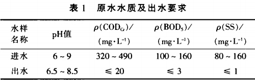 设计水量为600m3/d,平均处理废水水量为25m3/h。废水水质及处理后出水水质要求见表1。