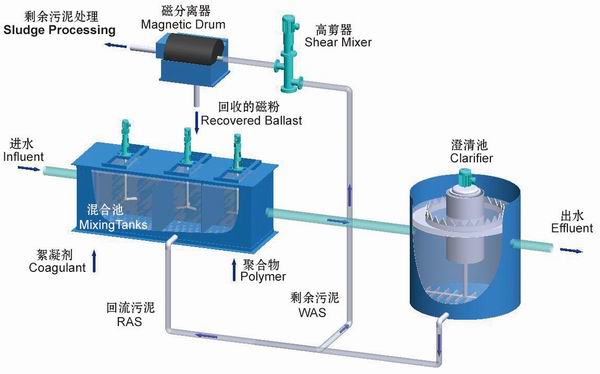 CoMag工艺是经过专利认证的去除悬浮物、总磷和其他水中污染物质的技术,其出水可媲美超滤,但其投资和操作费用只是超滤的一小部分。CoMag系统可靠、高效、简易(操作简单)并且占地面积小,它已逐渐成为高成效、低成本处理市政污水和工业废水的典型代表工艺之一。