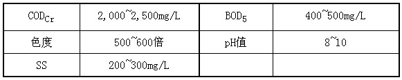 第三类为漂白污水,其CODCr值很低,一般不超过150 mg/L,并含有少量的氧化剂。三种水混合后其CODCr为2,000~2,500mg/L,呈碱性。