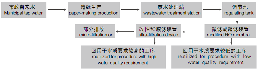 造纸工业既是水污染大户又是用水大户。据不完全统计,其废水排放量达20多亿吨,占全国工业废水排放量的11%以上,COD排放量更是多达300多万吨,占全国COD排放量的42%,居第一位。近年来,由于水资源的匮乏、经济的持续增长,导致水资源价格的不断提高以及面对严峻的环境污染形式,国家对环保执法力度的进一步加大,要求造纸企业寻求一种符合国家环保政策要求的新工艺、新技术,来实现造纸废水的循环利用。怡百信公司针对造纸企业的这一需求,设计研发的造纸综合排放废水回用系统,通过对经传统方法处理后达标排放的造纸综合废水作进一步深度处理,并可根据客户不同的用水要求提供不同水质标准的回用水。该系统一方面能有效减少废水排放,取得了良好的环境效益;另一方面节约大量水资源,降低生产成本,取得了良好的经济效益。