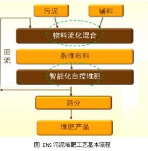 针对传统堆肥中存在的误区,如夸大机械化和翻堆、忽略湿泥混料的微观混合、过量通风及布风不合理、过程不控制或控制不合理等,ENS污泥堆肥工艺技术的特点体现在以下几个环节(参见图):