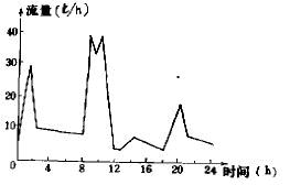 该企业印染废水主要来源于染整和条复工序。所用染料有:媒介染料,分散染料中性染料及洗净剂、元明粉、醋酸、硫酸等助剂。废水水质随产品染色种类不同而有较大变化,水质一般为,PH4~9,CODCr200~400mg/l,BOD5 150~300mg/1,Cr6+ 0.100~0.160mg/l,色度100~200倍。印染废水排放量日变化曲线如图1。