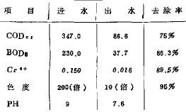 本工程投入运行以来, 设备运行正常,水质稳定, 处理效果较好。废水经处理后各项指标均达到国家排放标准,当滥测分析结果如表1。