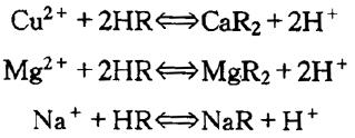 氢离子交换过程反应式如下: