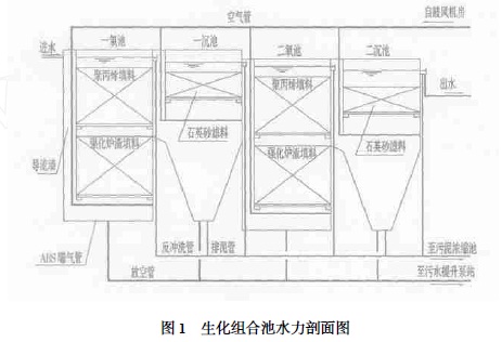 二段法生化组合池的运行由5 部分组成:即布水系统、布气系统、反冲洗系统、排泥系统和放空系统.