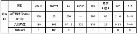 厂排放口监测结果(六日均值)见表4