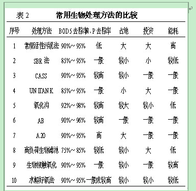 定性比较时可以采用有定论的结论和经验值等, 而不必进行详细计算。几种常用生物处理方法的比较见表。