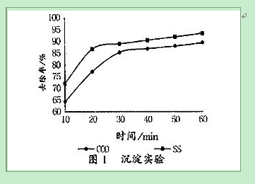 ③实验结果表明,沉淀时间越长效果越好。但考虑生产实际的需要,沉淀时间为30-40min,可满足山水水质的要求。