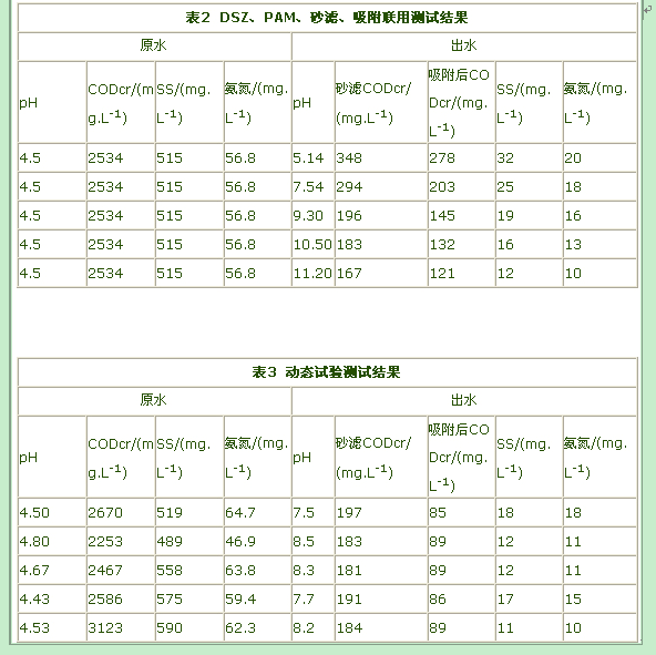 静态实验是采用烧杯实验,即向5只烧杯中分别加人同样的水样做条件实验,分别加人混凝剂、絮凝剂,经沉淀、砂滤、再吸附,最后测清水中的CODc、SS、氨氮及pH值。