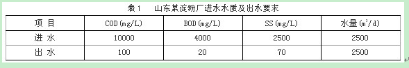 考虑到其他工段的水都实现了闭路循环,废水主要是淀粉洗涤的工艺水,COD浓度在10000mg/l左右,B/C在0.4左右,可生化性较好,故采用以厌氧生物处理为主的处理工艺。由于此水温度较高(一般在460C左右)必须经过通过沉降罐降温,而且沉降回收部分蛋白后再进入厌氧。