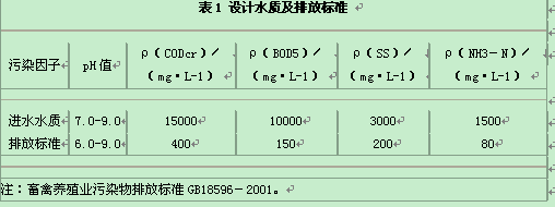 广州某规模化养猪场的污水量为 500 m3/d,设计水质及排放标准见表1。