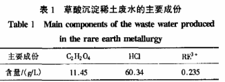 试验中所使用的试剂主要有:TOB、TOC、TOD、草酸、氢氧化钠、高锰酸钾均为分析纯;煤油为工业纯;实验用水为一次蒸馏水。实际草酸沉淀稀土废水取自某稀土冶炼厂,其成分见表1.