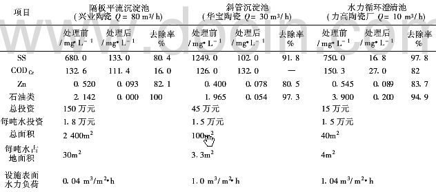 众多的陶瓷废水处理工程中,有7%-8%是由专业工程公司为其设计采用斜管沉淀池(或竖流式沉淀池)进行固液分离处理的,其生产能力较平流式沉淀池有一定幅度的提高,处理效果也理想些,但在运行中出现一些问题,一是由于水流在斜板沉淀池中停留时间短,无缓冲余地,容易造成混凝反应不善,效果不易发挥,或未根据水质水量的变化及时间调整投药量,很快影响水质,二是由于陶瓷污泥粘度大,运行时间稍长后会在斜板间或斜管孔内积泥,给运行带来困难。具体参见http:更多相关技术文档。
