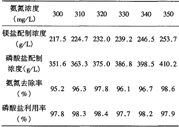 预曝气池利用原来的污泥浓缩池改造。平面尺寸为 1 8 .4 m×2 .3 m,有效水深 6.4 m,池底装设曝气头, 前段依靠曝气吹脱去除部分氨氮及污染物, 后段作为曝气絮凝池使镁盐、磷酸盐快速混合搅拌,设计絮凝时间为 2 0 m i n 。 在 H A R池启动初期,预曝气池一直未投加药剂。6月 2 5日开始,厌氧池颗粒污泥基本形成, H A R池出水 C O D N H 3 一N稳定维持在 1 9 2 5 mg / L 、4 9 3 m g /L ,开始投加镁盐( M l 2 · 6 H 2 0 ) 、磷酸盐( N a 2 H P 0 4 · 1 2 H 2 0) 。每天上下午测定两次氨氮浓度,及时改变药剂配制浓度。调整池内p H至 9.5 , 曝气吹脱氨氮的去除率在 3 0~4 0 %, 经吹脱后氨氮浓度一般在 3 0 0~3 5 0 mg / L 。根据现场小试结果,控制p H=9 .5 、 M g 2 、N H 4 、P O 4 0 一 的摩尔比为1 .2 : 1 : 1.1 ,氨氮去除率可达 9 6 .8 %,磷酸盐利用率在 9 8 %以上,预曝气出水剩余磷在 5 m g /L以下。